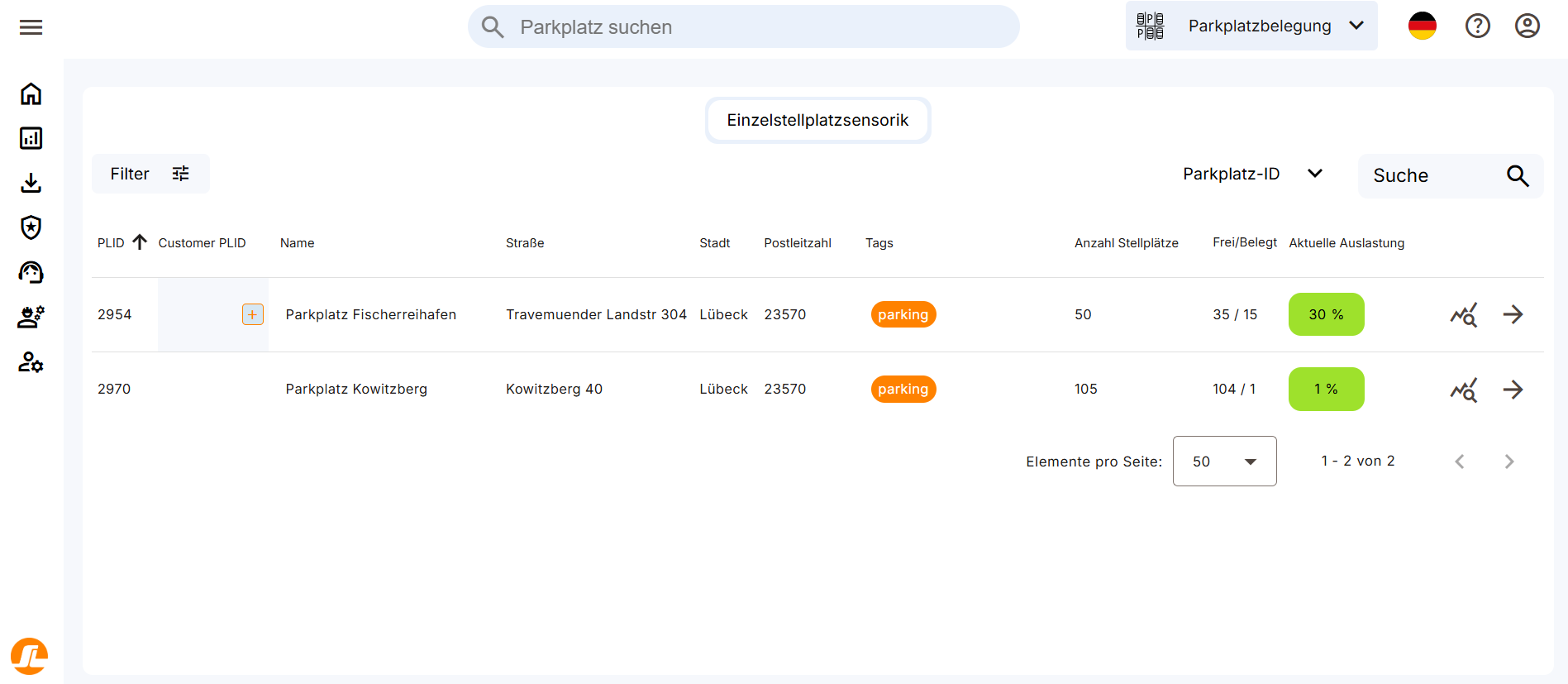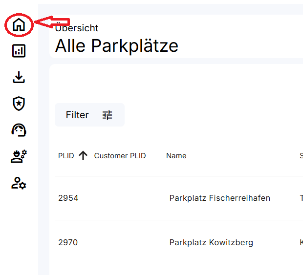 Sollte man auf einer anderen Seite gelandet sein, kommt man durch einen Klick auf "Parkplätze-Übersicht" (Haus Symbol) wieder zurück auf die Startseite.