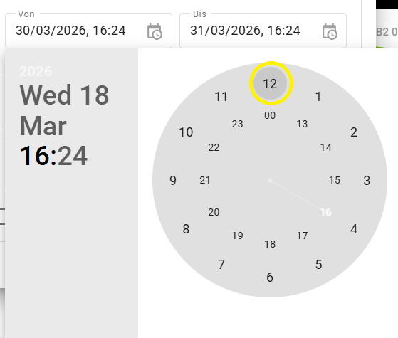 Klicken Sie anschließend auf die gewünschte Start- oder Endzeit. Zunächst wählen Sie die Stunden aus.
