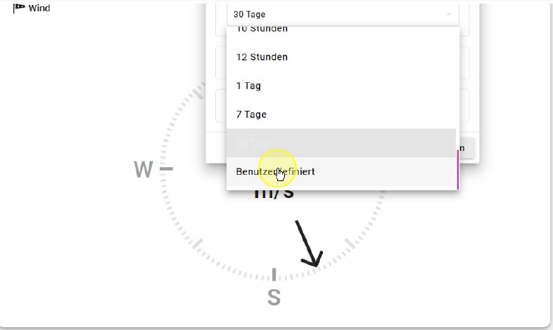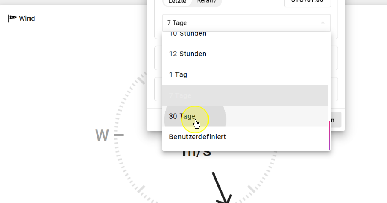 Wählen Sie beispielsweise "30 Tage" um sich Werte der letzten 30 Tage anzeigen zu lassen.