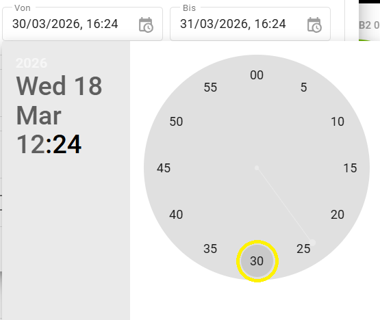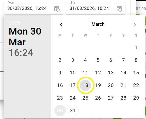 Zum Einstellen des Start- und Endzeitpunktes, klicken Sie auf die jeweiligen Datumsfelder. Es öffnet sich ein Kalender-Menü.