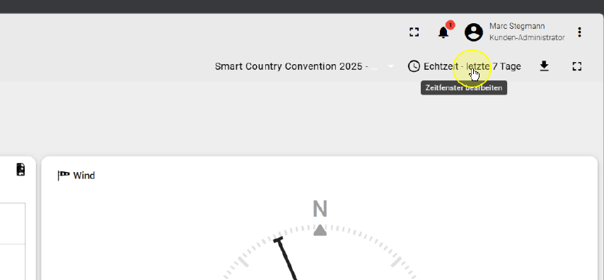 Anschließend verschwindet das Menü, der neue Zeitbereich wird im oberen Menüband angezeigt und das Dashboard automatisch aktualisiert.