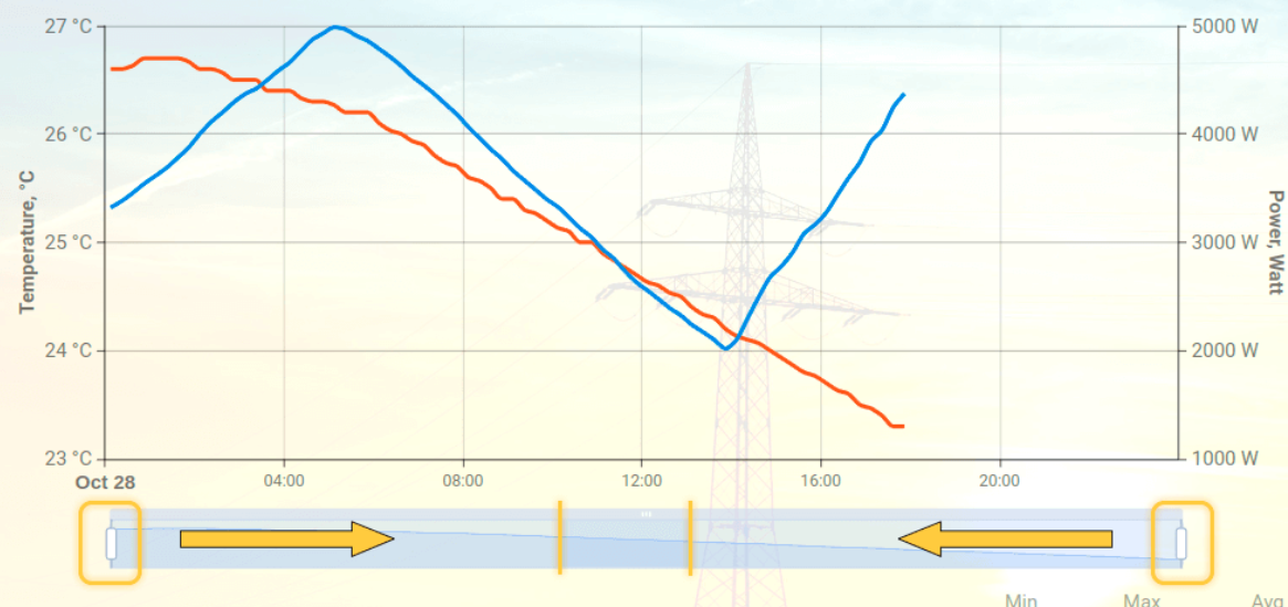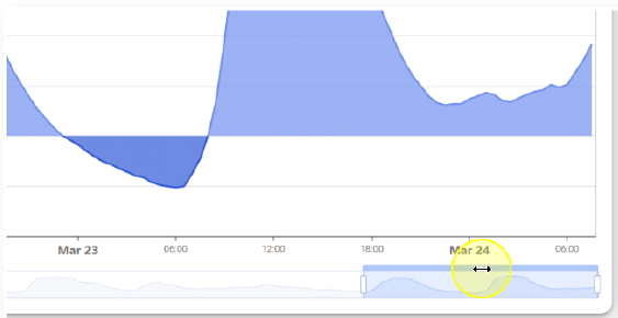 Dafür können Sie hineinzoomen, indem Sie die beiden Schieberegler näher zueinander bewegen. So legen Sie genau fest, welcher Zeitraum in der Grafik angezeigt werden soll.
