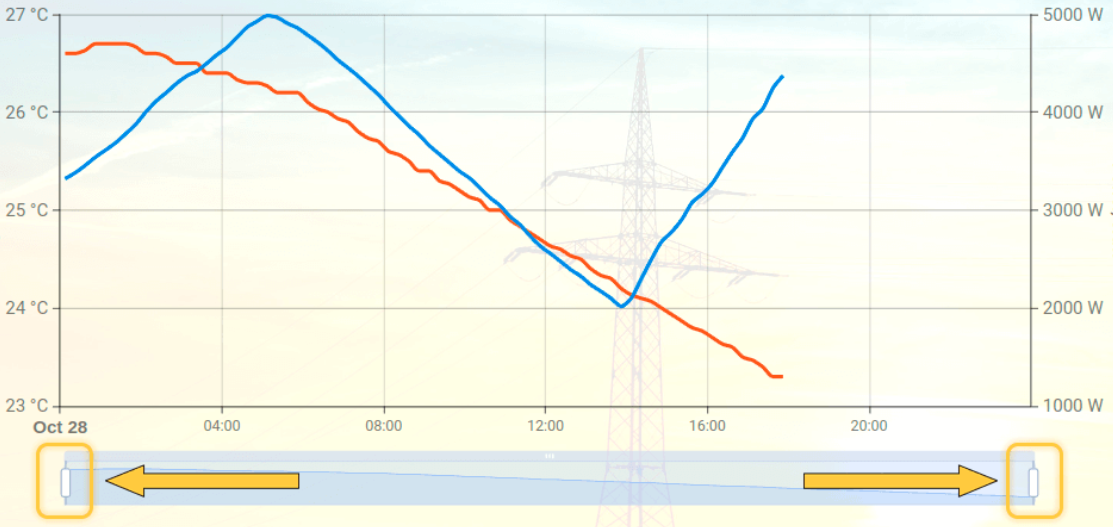 - Bewegen Sie die beiden Schieberegler aufeinander zu, um den anzuzeigenden Zeitraum einzugrenzen.